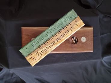 2 Part Olive, Walnut or Oak (with Resin) crib boards with magnet wooden base with engraving