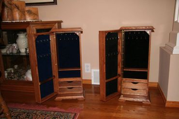 20 by 10 by 10 in Walnut or Oak Jewelry box with drawers and velvet lining
